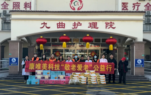 秉持 “敬老、爱老、助老” 的传统美德,康唯美组织员工志愿者前往当地敬老院开展慰问活动,为老人们送去贴心关怀与温暖陪伴。活动前,企业充分调研敬老院老人的生活需求与兴趣喜好,准备了牛奶、食品等实用物资,力求让老人们感受到细致入微的心意。